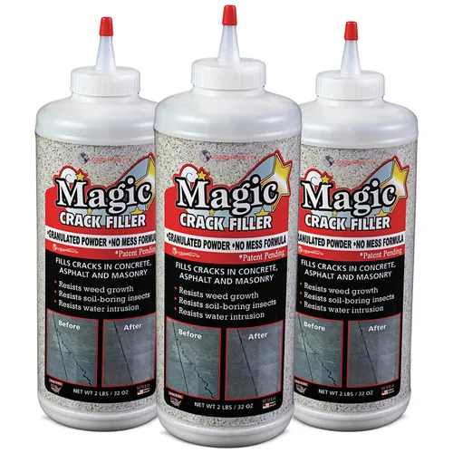 🚶FILL ANY CRACK Because of its granulated formula, Magic Crack Filler can be used to fill everything from hairline cracks to much larger more unsightly ones—and from straight cracks to ones that look more like a road map through the mountains.🚫NO MESS FORMULA All it takes is water to dampen the area to be filled and Magic Crack Filler. That’s it! No messy formula, no attempts to get the right consistency, no buckets and mixing tools—absolutely nothing but water. The installation is so simple virtually anyone can do it.
