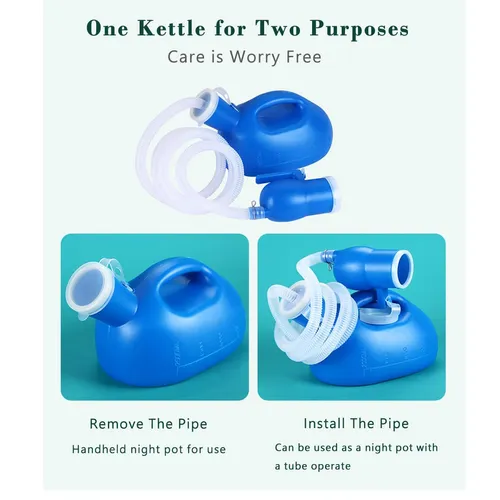 Large capacity urine collection bottle, 2000ml, with a scale for measuring urine volume. It can meet the requirements of urine measurement. This is a very clear observation of the situation. Equipped with a long tube, measuring 59 inches in length. The tube can be freely cut to the length you need, and patients can use the urinal directly on the bed or wheelchair.